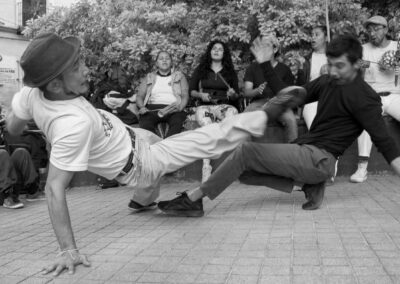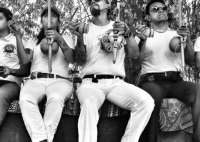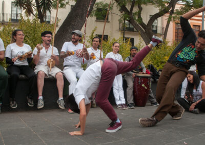 Barrio de Angola, liderado por Saúl Chávez en la CDMX, es una comunidad vibrante dedicada a difundir la capoeira como expresión integral de música, danza y combate, así como otras manifestaciones culturales afrobrasileñas desde el Brasil colonial hasta la actualidad. A través de sus rodas, donde música y movimiento se combinan en un diálogo corporal único, y sus esfuerzos educativos, promueven la riqueza de la cultura afrobrasileña y crean un espacio inclusivo para apreciar y practicar estas formas de arte.